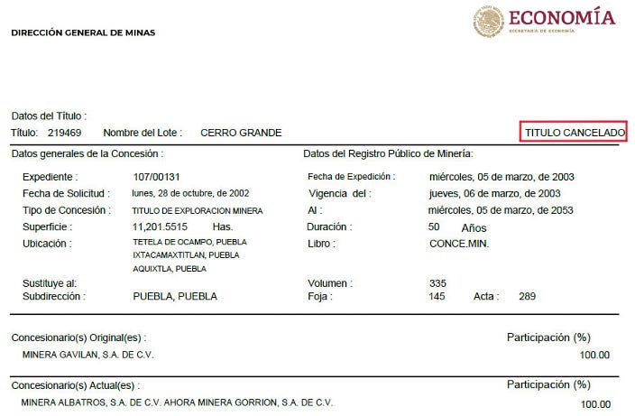 Retroactive concession cancellation: this usually means records were changed to justify a change in past decision, in this case 14 and 20 years ago, done to fit AMLO’s policies. There’s not much data on it, but it’s an important mental model to place when thinking about Almaden’s situation.
