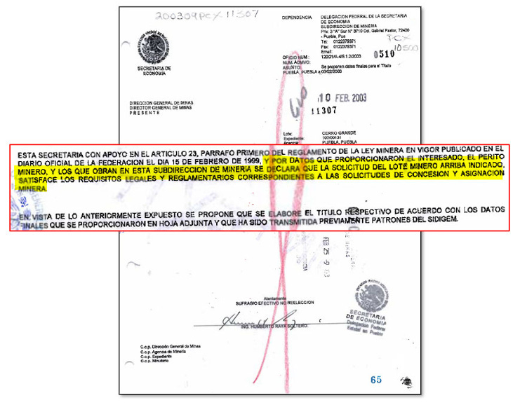In February 2003, Economia issued Oficio No. 120/21/A.4/6.1/2003, which approved the concession application: